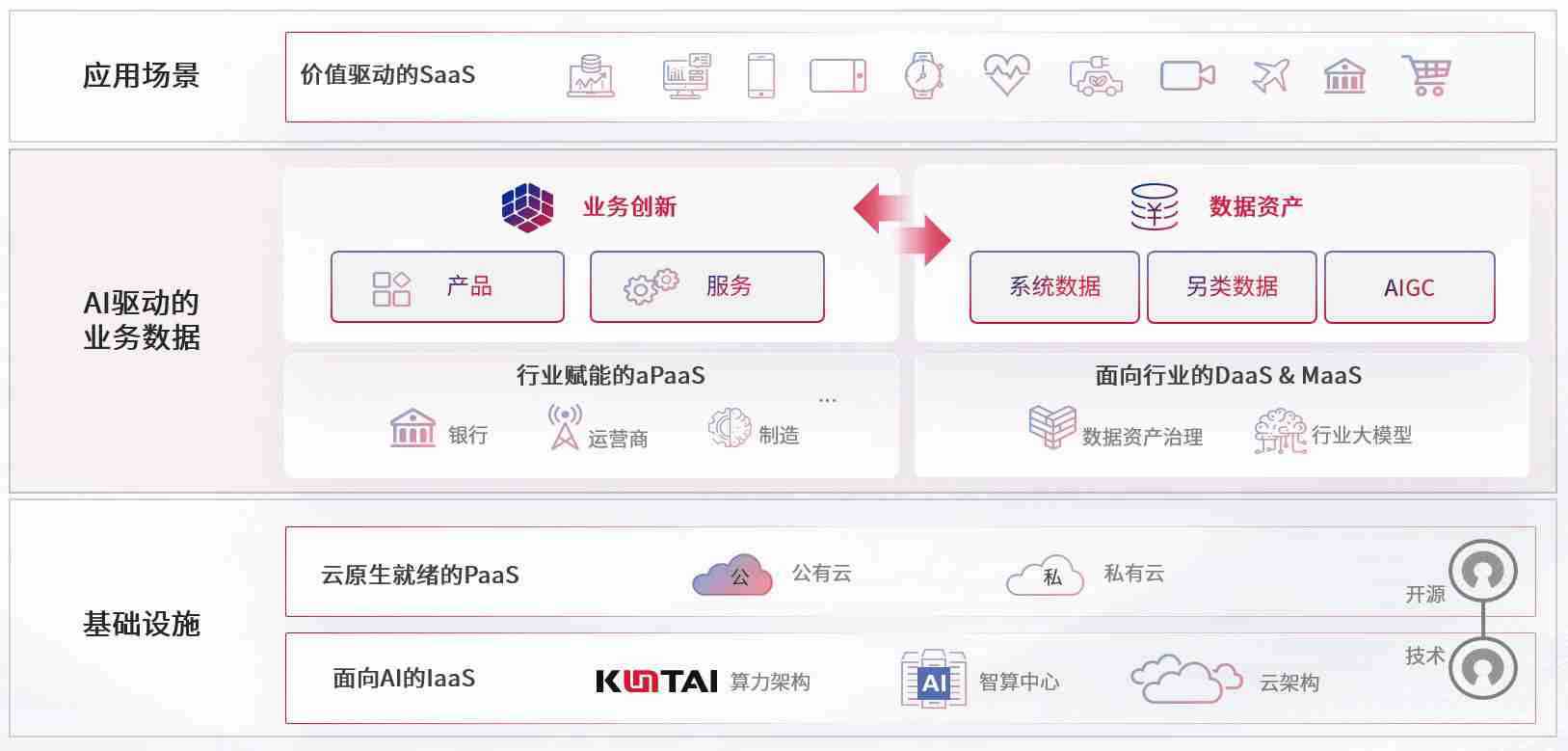 数字时代,,围绕企业数字化转型的关键要素,,,,Z6尊龙时凯数码开创性的提出数云融合战略和技术体系框架,,,,着力在云原生、、、、数字原生、、、AI原生和信创产业上架构产品和服务能力,,,,为处在不同数字化转型阶段的快消零售、、、汽车、、、金融、、、医疗、、、政企、、、教育、、运营商等行业客户提供泛在的敏捷IT能力和融合的数据驱动能力,,,构建跨界融合创新的数字业务场景和新业务模式,,,助力企业级客户建立面向未来的核心能力和竞争优势,,,,全面推动社会的数字化、、智能化转型升级。。。。